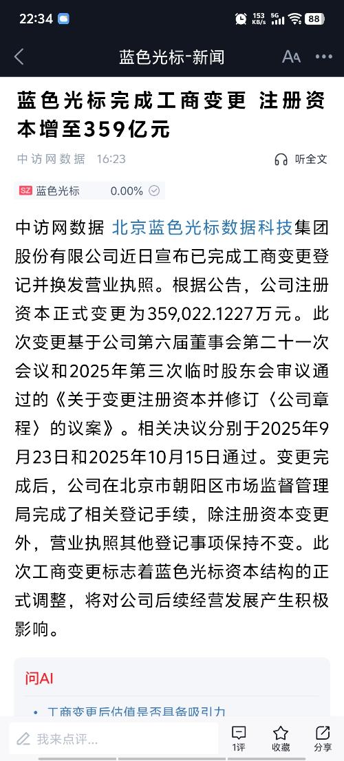 资讯 蓝色光标:关于完成工商变更登记并换发营业执照的公告