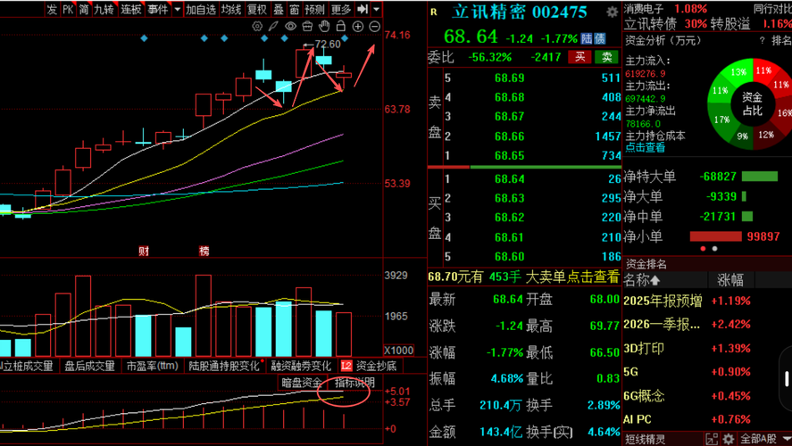 $立讯精密(SZ002475)$立讯精密002475:日K收出那根加长下影线,看着就让人心里踏实。盘中短暂下探,最低触及66.50元时,但股价随即迅速企稳回拉,10日均线附近的承接力度扎实可见,有资金在悄悄兜底,没有出现溃散式走弱,这点很重要。短线波动虽有所加大,低位韧性却十足,随即走出强势反抽修复,多头的反击力道丝毫不含糊。尾盘虽有小幅回落反复,但整体稳稳维持在关键支撑区间上方运行,止跌企稳形态...