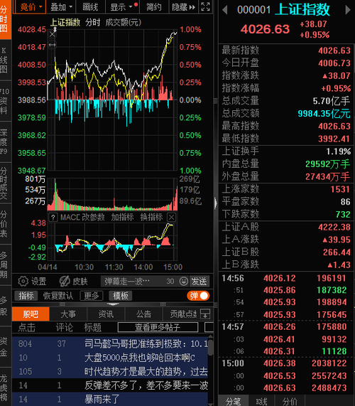 各位朋友大家好,我是发哥。本文仅为个人市场观察与复盘,不构成任何投资建议。股市有风险,投资需谨慎。 一、大盘概述 昨日A股三大指数整体走强,沪指重回4000点上方,深成指与创业板方向表现相对活跃,成交额同步放大,市场情绪有所回暖。从结构上看,本轮上涨更多体现为阶段性修复过程,盘面活跃度有所提升。 不过在指数走强的同时,也需要关注当前所处的位置。指数运行至前期密集成交区域附近,上方存在一定压力,短期...