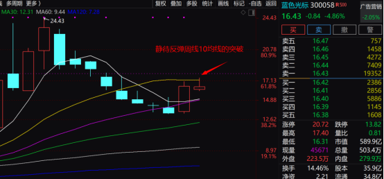 4.16早评 5日线是蓝色光标的生命线,昨天首次失守,今天若站回则蓄势确认