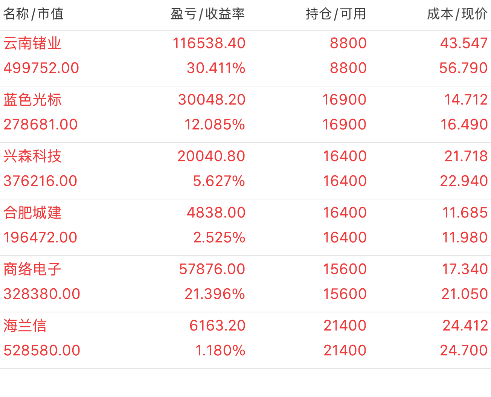 蓝色光标,$香农芯创(SZ300475)$$云南锗业(SZ002428)$$华胜天成(SH600410)$要坚持价值投资,进退有度,高低切换,抛弃炒过头了没有业绩支撑的概念股。年报,一季报周期,要坚持管理层倡导的价值投资才有价值潜力,进退有度,高低切换,选择方向像海通发展这样业绩非常好,高分红高送,挖黄金坑洗盘之后,持续上攻,蓄势待发迹象明显的成长绩优股中长线介入潜伏,耐心的持有,必创历史新高,后...