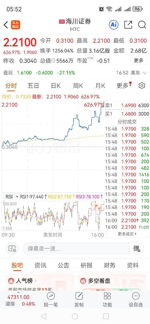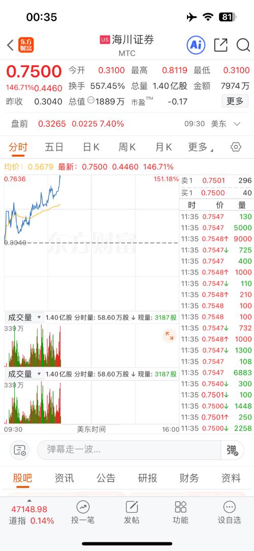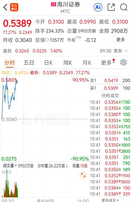 $东方财富(SZ300059)$美股最靓的仔,中概股海川证劵暴涨,今天就看大A券商的表现了