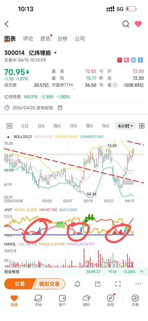 $亿纬锂能(SZ300014)$ 在下跌通道内震荡,尚未走出迷雾。 压力75,支撑60。 图示红圈内为 4H级别最近三次加仓机会 当前又到小压力附近了 有加仓这里T一下比较合理 大盘$上证指数(SH000001)$已经完美兑现了本次的攻击目标4035点,接下来自然是分歧,有获利的到位置就兑现是市场永恒的主题 东财$东方财富(SZ300059)$ 未操作,还是认为此处接近周线底部 仓位提升到4000...