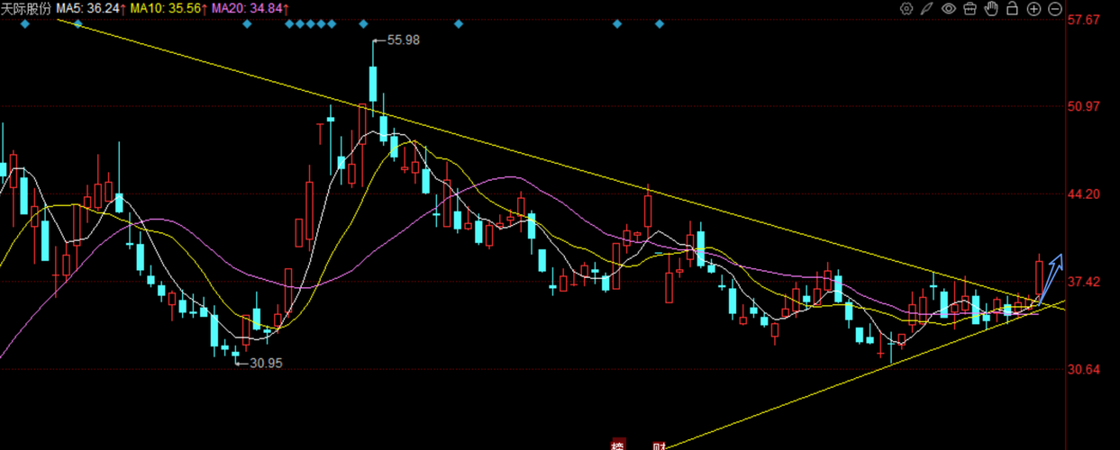 $天际股份(SZ002759)$天际股份今天大单开始吸筹了?相比昨天放量超过12亿,去年的天际股份是锂电池的核心,走出了四波主升浪,市场记忆犹新,而最近几天,虽然晚于指数反弹,但是一旦股价反弹,很容易卷土重来,前几天是标准的三角整理形态,通过一个月的窄幅波动,熬出了很多之前的筹码,随后打破三角整理的框架,开始向上反转,同时也形成了类似头肩底的反转形态,今天是反弹的第一天,我已经开始建苍了,股价一旦...