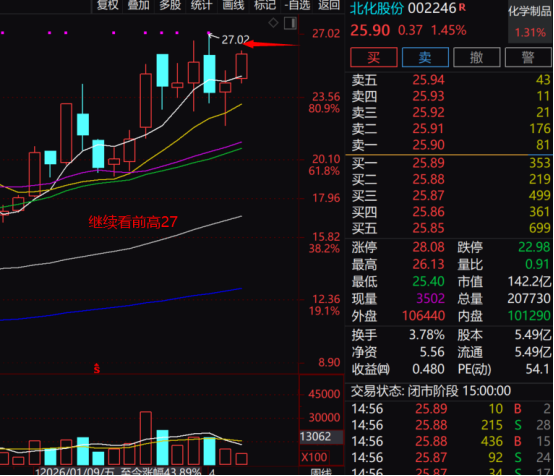 各位朋友大家好,本文仅为个人市场观察与复盘,不构成任何投资建议。股市有风险,投资需谨慎。 个人跟踪标的(仅供参考,不构成投资建议) 鼎龙股份(300054) 半导体材料核心标的,国产替代逻辑明确且具备较强确定性。量能保持平稳,技术面维持箱体震荡格局。业绩基本面支撑稳固,日内跟随半导体板块同步窄幅调整,属于行业轮动下的正常波动。下方支撑有效性待盘面验证,中期受益半导体行业景气上行,可跟踪估值修复节奏...