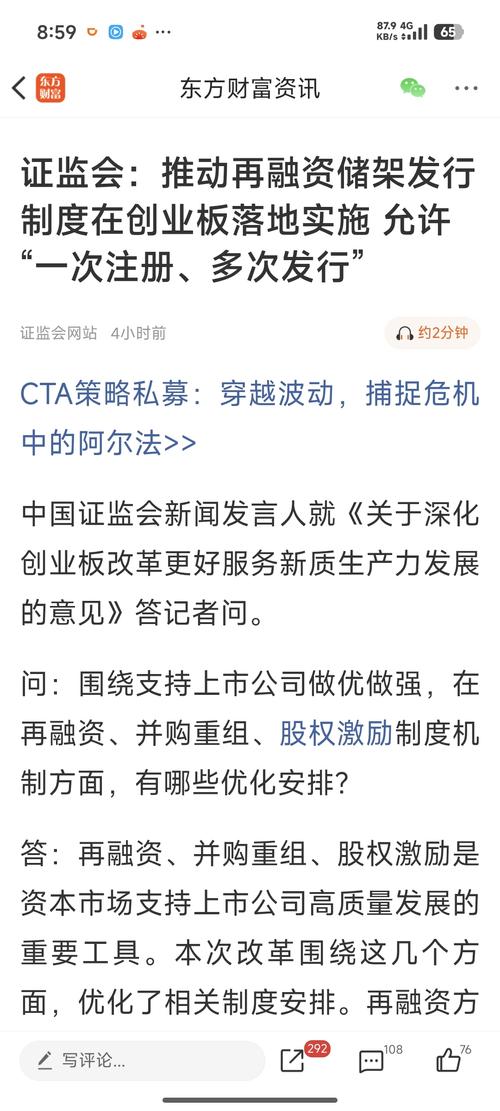 $安诺其(SZ300067)$小安子节凑把握这么好,刚准备重组好的政策就赶上了…真可惜没抗住连续下跌跑了…………再融资、并购重组、股权激励是资本市场支持上市公司高质量发展的重要工具。本次改革围绕这几个方面,优化了相关制度安排。再融资方面,适应成长型创新创业企业研发持续时间长、对募集资金灵活性时效性要求较高等需求,推动再融资储架发行制度在创业板落地实施,允许“一次注册、多次发行”