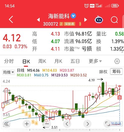$海新能科(SZ300072)$4.11买入少量底仓,持续观察着……
