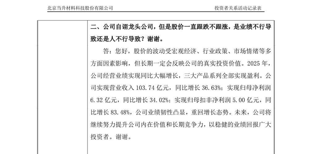资讯 【调研快报】当升科技接待当升科技2025年度网上业绩说明会采用网络平台线上交流方式进行,面向全体投资者调研