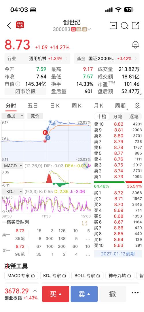 $创世纪(SZ300083)$参考中铁工业,下午开盘秒板,然后打开,第二天犹豫中上板