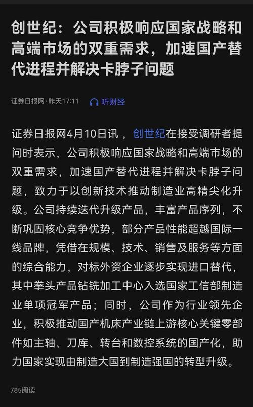 资讯 创世纪:公司积极响应国家战略和高端市场的双重需求,加速国产替代进程并解决卡脖子问题