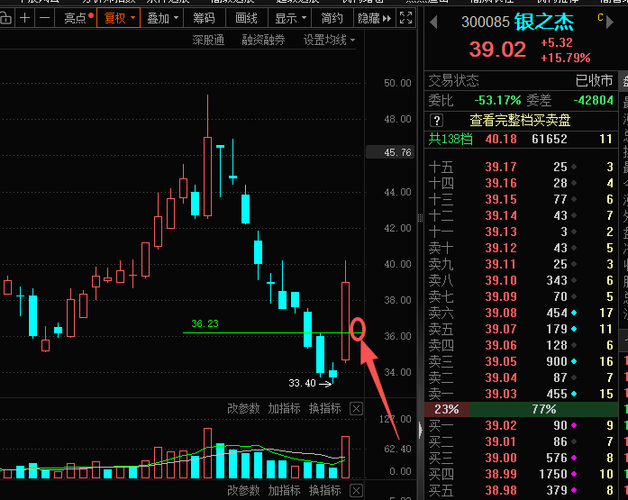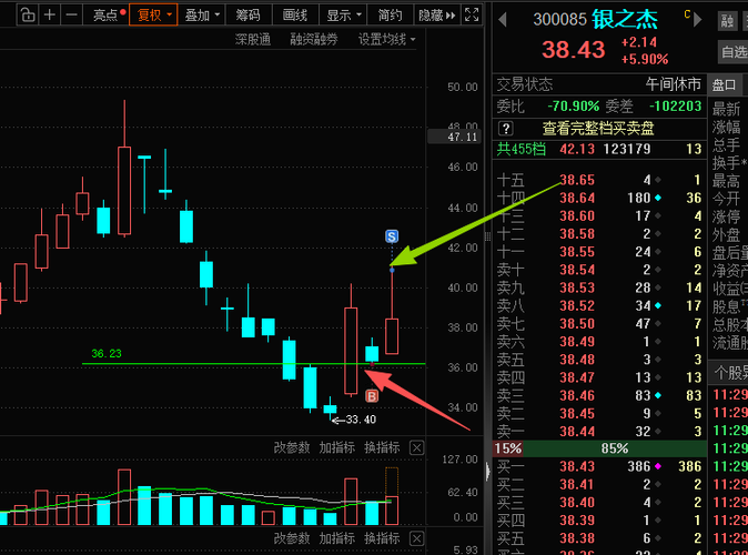 $银之杰(SZ300085)$周一可能高开43元