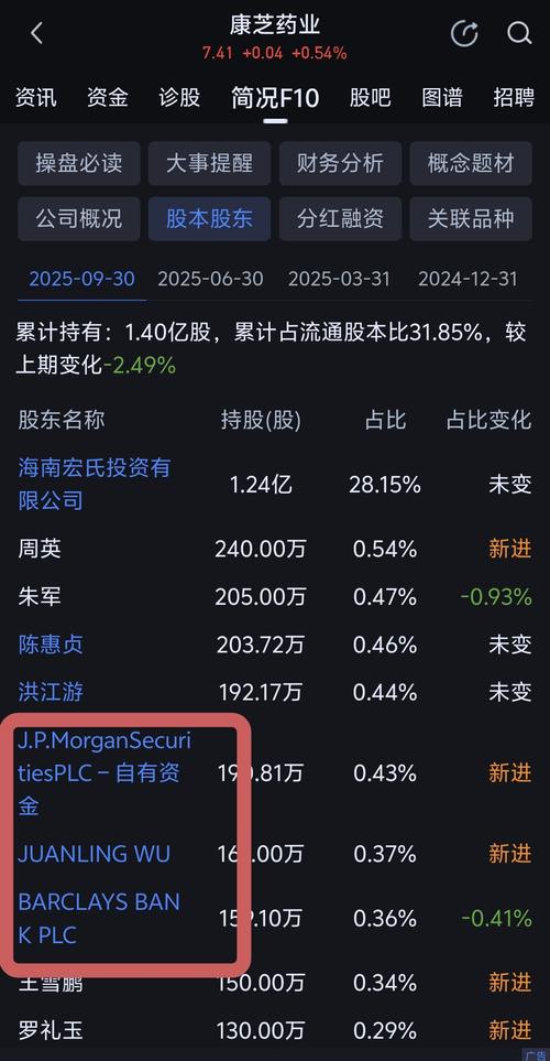 $康芝药业(SZ300086)$ 康芝药业的十大流通股东名单里,J.P.MorganSecuritiesPLC持有190.81万股,Barclaysbankplc持有159.10万股,都是外资大行的自营账户。十大流通股东名单是每季度更新一次的,可以关注外资是加仓还是减仓。 外资大行的自营账户配置康芝药业,说明在他们的研究框架里,这只票的儿童药赛道逻辑是成立的。但外资持仓一百多万股,对于33亿市值的...
