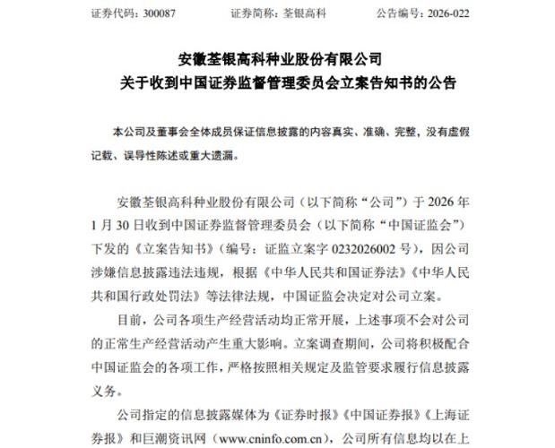 立案调查后,您是否在索赔范围内?维权时间节点至关重要!适格投资者条件:2026年1月30日之前买入300087荃银高科,且在2026年1月31日(含当日)之后卖出或继续持有者。以上索赔登记条件仅代表证威律所观点。不作为任何证券投资决策和买卖建议,最终以法院的认定结果为准。了解更多点头像看企业信息或查看证威律所相关信息