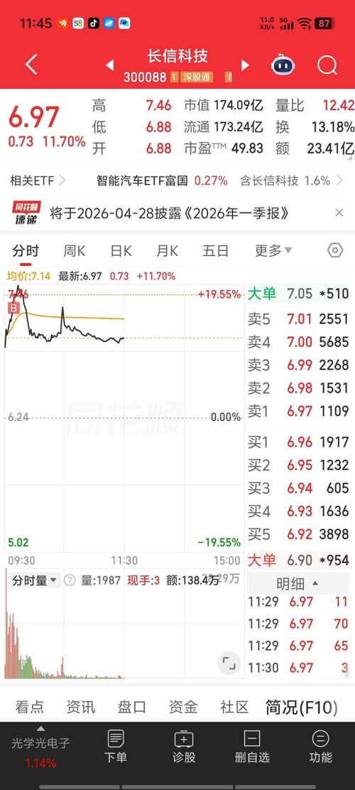 $长信科技(SZ300088)$下午回落到五六个点涨幅