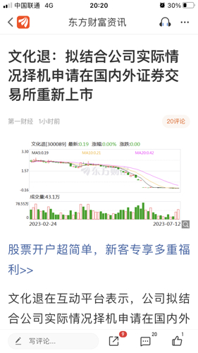 文化退:拟结合公司实际情况择机申请在国内外证券交易所重新上市