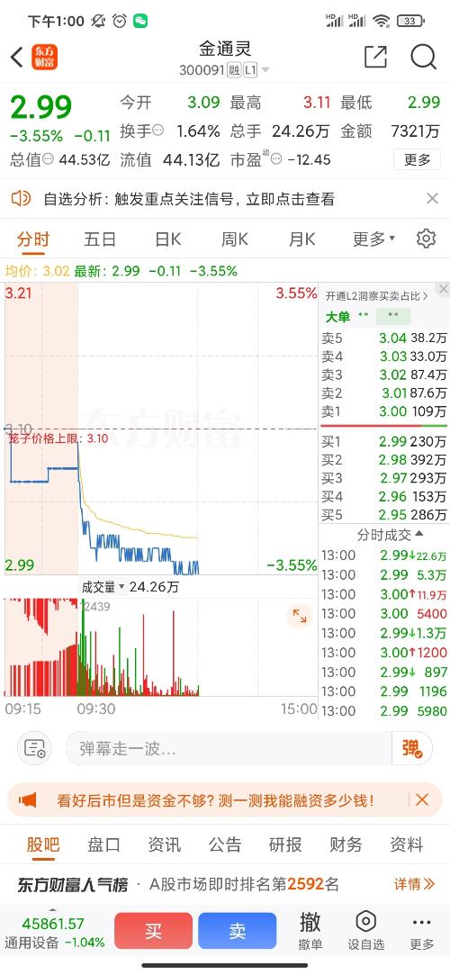 $金通灵(SZ300091)$砸死这群,终于体验到融券带来的喜悦了