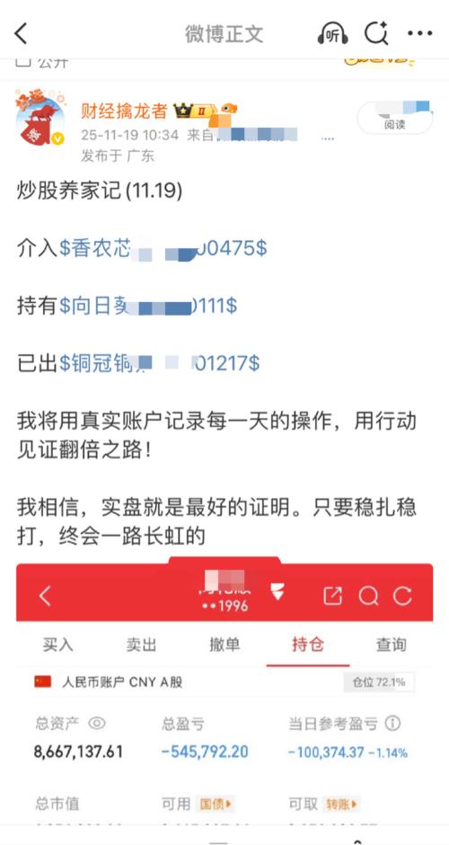 炒股养家记(11.19) 介入$香农芯创sz300475$ 持有$向日葵(SZ300111)$ 已出$铜冠铜箔sz301217$ 我将用真实账户记录每一天的操作,用行动见证翻倍之路! 我相信,实盘就是最好的证明。只要稳扎稳打,终会一路长虹的