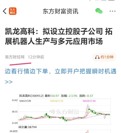 $向日葵(SZ300111)$$万马科技(SZ300698)$$祥源新材(SZ300980)$盘后大利好,凯龙高科成立人形机器人公司,机器人概念,总市值才19亿,市值严重低估谁能找到第二家?五天均线向上,反包封板节奏