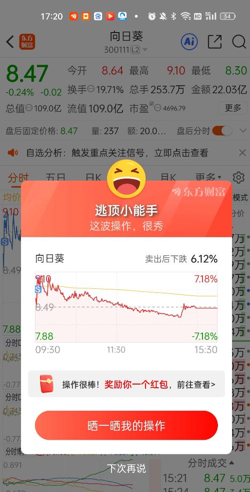 $向日葵(SZ300111)$感谢小小向日葵,感谢主力大哥!美滋滋的一天。 又是卖在山尖尖上