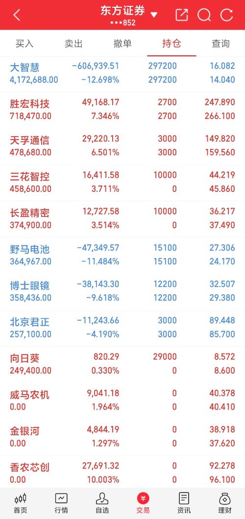 介入!向日葵$向日葵(SZ300111)$ 介入!长盈精密$长盈精密(SZ300115)$ 介入!三花智控$三花智控(SZ002050)$ 出!香农芯创 持有!天孚通信 持有!北京君正 出!威马农机 持有!野马电池 出!金银河 持有:大智慧 持有:博士眼镜 持有!胜宏科技 我将用真实账户记录每一天的操作,用行动见证翻倍之路! 我相信,实盘就是最好的证明。只要稳扎稳打,终会一路高歌猛进! 希望各位股...