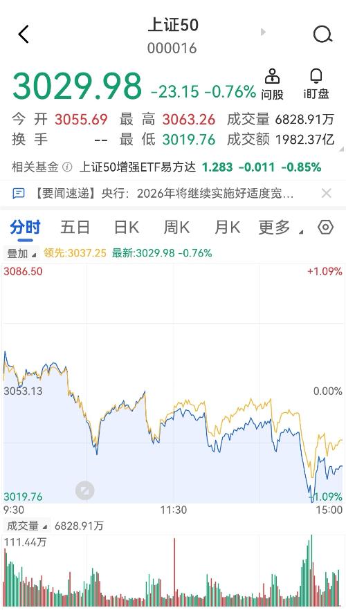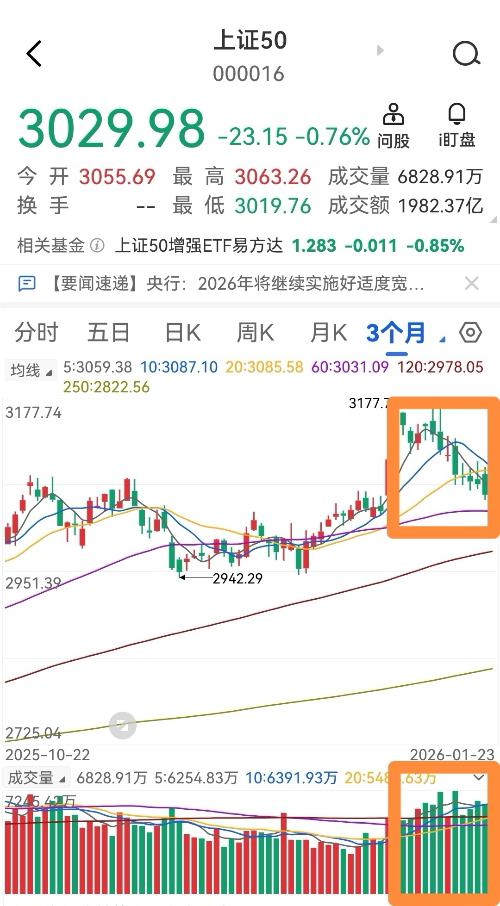 $积成电子(SZ002339)$$三安光电(SH600703)$$东方日升(SZ300118)$ 1月23日,星期五。 A股三大指数集体收涨,三市成交额31184亿,较昨日放量4017亿。 今天指数呈分化走势,市场在这里的策略是压住大指数,炒小盘股和题材股。 国家队在给市场降温,打压上证50和沪深300、抛ETF。 中证500指数继续强势,上证50、沪深300指数相对较弱。 看看上证50分时走势,...