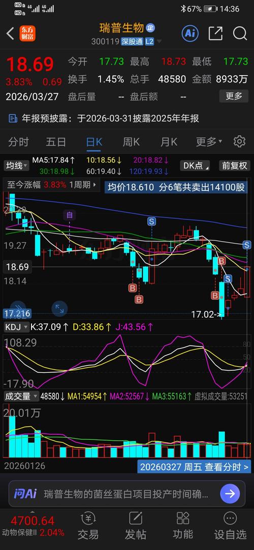 $瑞普生物(SZ300119)$今天大盘个股都涨,你跟不上,明天又可以跟着跌。