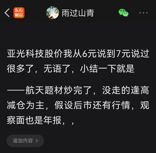 $ST亚光(SZ300123)$太枸了! 为什么最近有网友频频问亚光科技?亚光我曾说过太多的话了,从六七元说看到十四元,它实在拱不动14元那赶紧逃丫,我自己不停的做套利净赚近四元,九元分批清仓,都是说过的。 再说最后几句为可爱的网友:回本则清仓,为啥,不为啥,因为我早早已清仓元月份说过的,累亖本姐了! 顺带聊句闲话,我在探究马斯克的灵巧手,对比国内的相关概念股可能有点机会,但大的机会不在a股,, ...