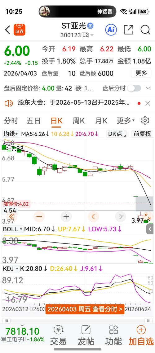 $ST亚光(SZ300123)$新来的st没有70%的跌幅,都看都不看你一眼,除非你自己拉一个右侧波段参与一下,否则不接你筹码,让里面机构跑不掉