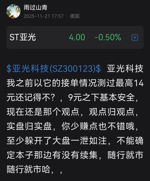 $ST亚光(SZ300123)$跌那么多还是40亿市值是硬伤,25亿可以接受。就是2.3块一股这样子!等着瞧