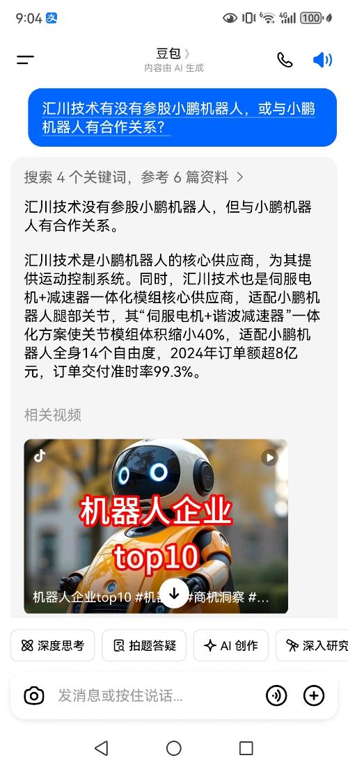 $汇川技术(SZ300124)$小鹏机器人的核心供应商?豆包查的,不知是否正确。