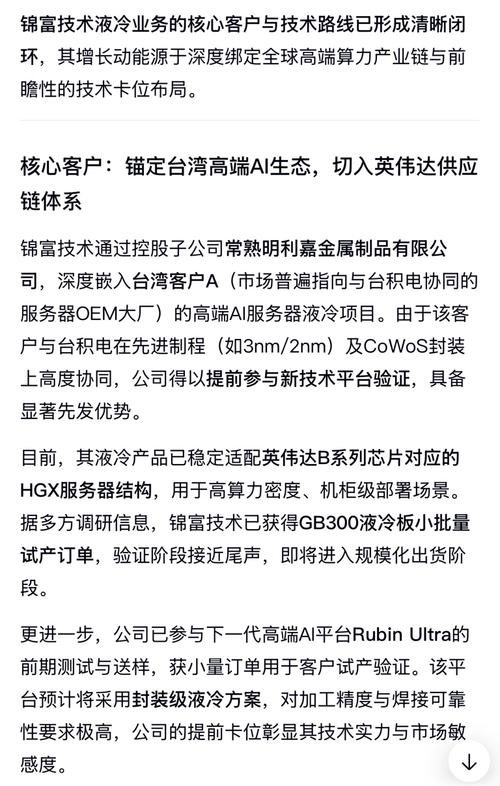 英维克的液冷方案与锦富技术的AOI检测,是服务器生产中既独立又互补的环节,双方客户都指向英伟达及其ODM代工厂(如工业富联),双方共享客户网。看看能不能蹭点热度吧