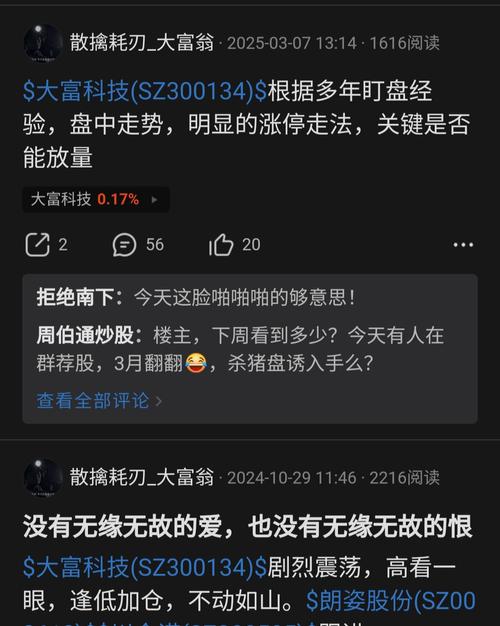$大富科技(SZ300134)$新主线来了,通信技术通信设备板块越20只涨停,大富通信没技术吗?