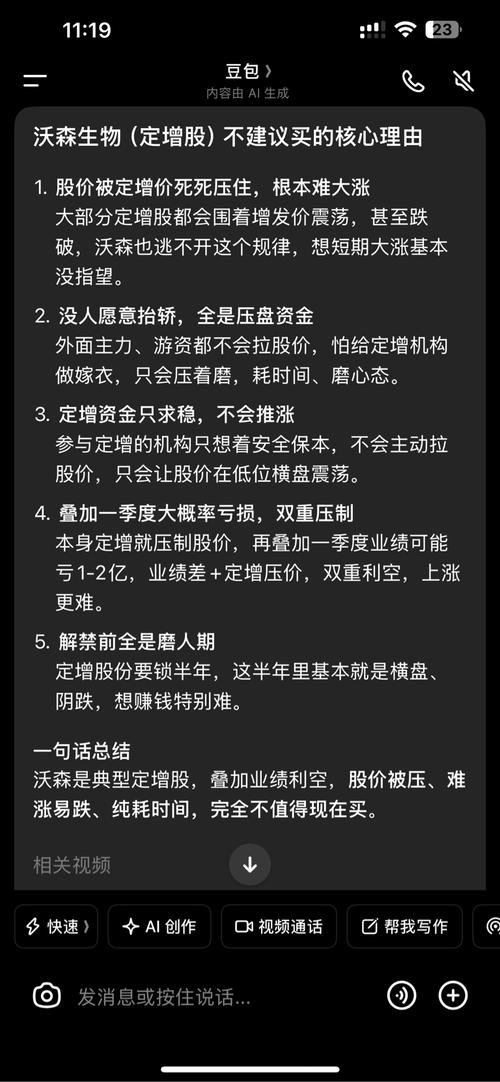 $沃森生物(SZ300142)$用豆包炒股者,草包也!