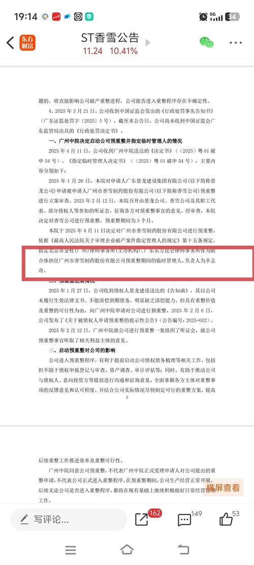 $ST香雪(SZ300147)$招重整投资人的公告来了,你们没看吗?明天封涨停板,买不进了。