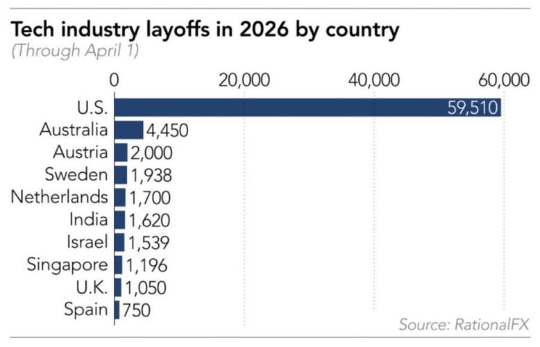 全球科技行业在2026年头三个月裁减了近8万个岗位。