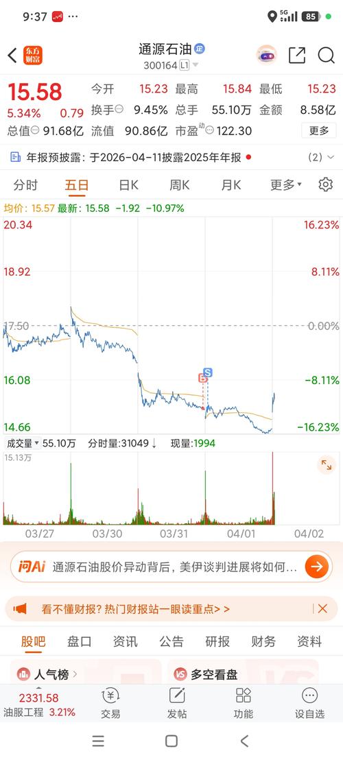 $通源石油(SZ300164)$石油股今天不会暴跌吧?