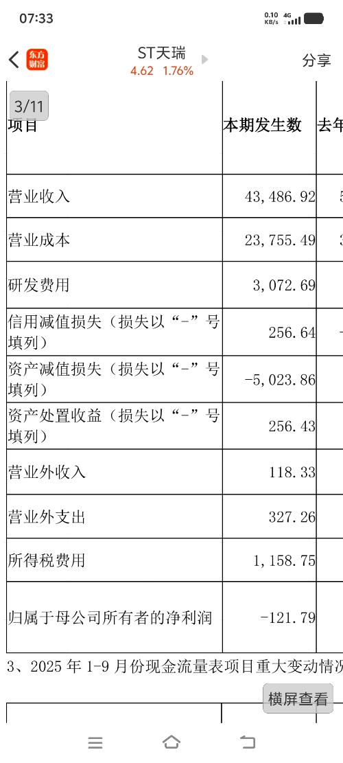 $ST天瑞(SZ300165)$业绩才亏100多万!现金流可以!年底转正!摘帽确定性了