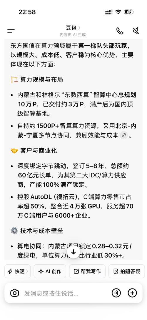 东方国信万人团队到底有什么魔力? 东方国信的运营算力规模分为自持和平台整合两部分,总运营算力约1500P以上,在国内处于特定细分市场的龙头地位。 运营算力具体规模 ·自持智算资源:约1500P以上(EFLOPS,即每秒百亿亿次浮点运算)(主要来自其内蒙古智算中心,该中心总体规划建设6栋数据中心机房,已部分投产并产生收入)。 ·平台整合GPU:通过控股视拓云,整合近4万张GPU,调度与支撑能力可达“...