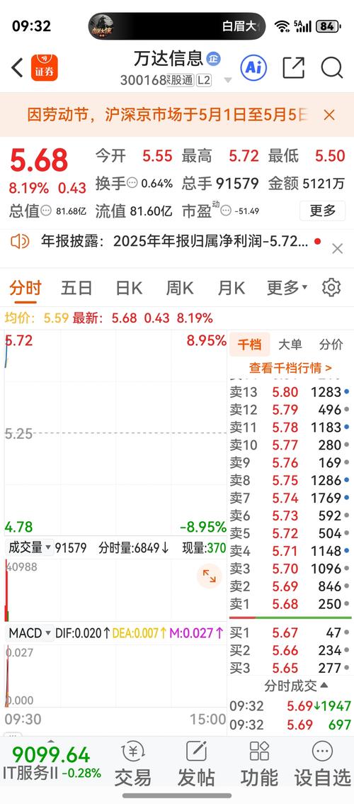 $万达信息(SZ300168)$刚开手机,发现大涨,5.65卖出1000股,立马成交,啥个意思?
