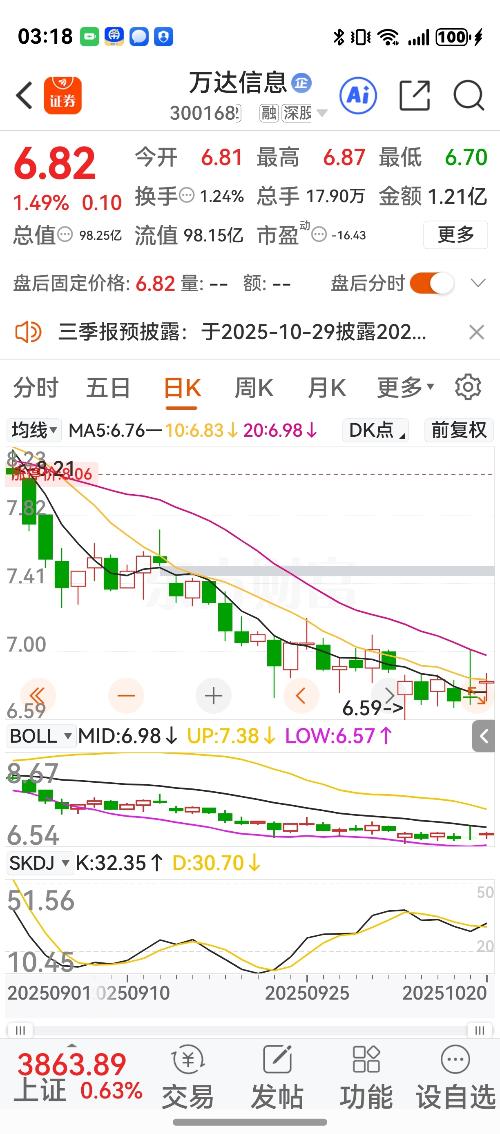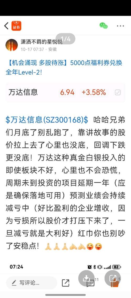$万达信息(SZ300168)$哈哈兄弟们大盘月底之前也就就样了(无量配合上攻不现实)