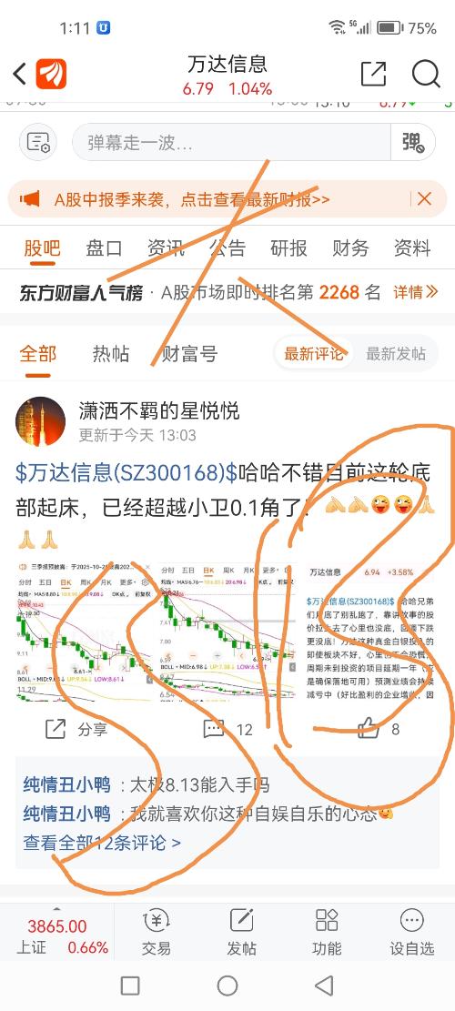 $万达信息(SZ300168)$上证指数今天跳空,万达围绕5-13天线做修复,好像今天技术面就怎么多