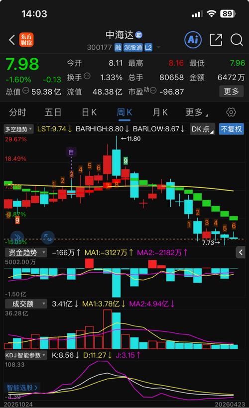 $中海达(SZ300177)$周线连续下跌,至今还没有上路迹象