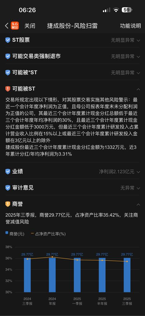 $捷成股份(SZ300182)$诊股发现这股有商誉减值风险和ST风险,想问一下懂的人,会因为分红不达标而被ST吗?