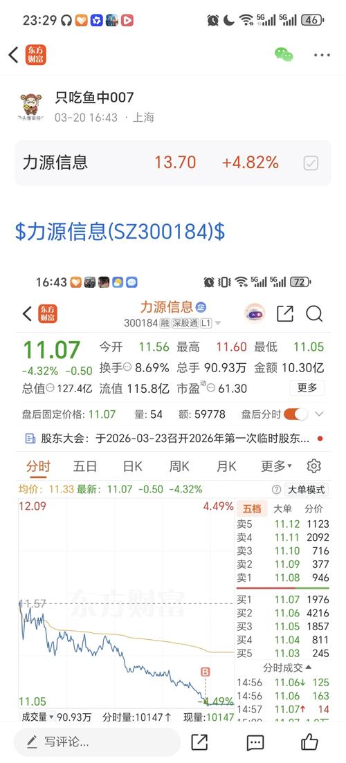 $力源信息(SZ300184)$虽然卖了,但头一次见到尾盘半小时成交量是全天最高成交量的票,近6亿。周一看看啥走势
