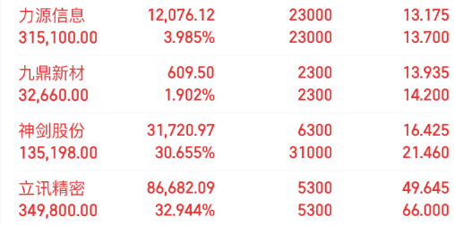 4月27日(周一)早盘:神剑股份、力源信息、九鼎新材、立讯精密