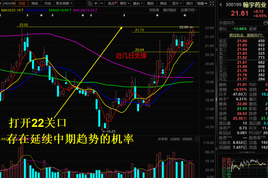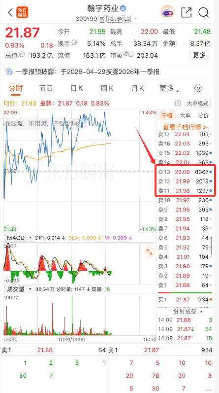 $翰宇药业(SZ300199)$2026年4月21日,今天很艰难的把21.98摸了一下,然后又去摸了一下21.99、22.00,太艰难了,七八千手的压单,记录一下,不知道何时才能重新突破关口