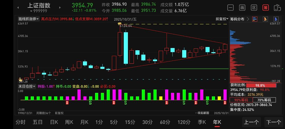 大局分析:老规矩先点赞再收藏关键时刻能帮忙 周五两市成交23178亿,缩量1039亿,大盘指数下跌0.81%,收盘3954,最高3986,最低3951,周四午开始的下跌如果归根于会谈的不及预期,那盘后出的公告是超于预期的,周五指数这块应该是修复状态,但是周五并没有,那么这里老k觉得就可以理解为市场的自然行为,也就是正常的冲破关键点位后的回踩动作,当然周五的下跌还可以归结到科技大票的急速下跌,因为这...