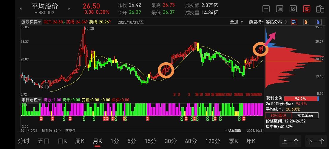 $多氟多(SZ002407)$$平潭发展(SZ000592)$$舒泰神(SZ300204)$ 关于11月份走向,目前上证指数看是自8月初以来5浪结构,4浪调还差1-2天震荡调整接近尾声,下周后半周启动5浪上涨。 平均股价指数周、月线都是走牛趋势,目前位置比较接近2020年4月份。 科技线(芯片、机器人、人工智能等创新类板块)中线依然看好,短线题材关注福建(海峡两岸)、固态电池(六氟磷酸锂)和创新药...
