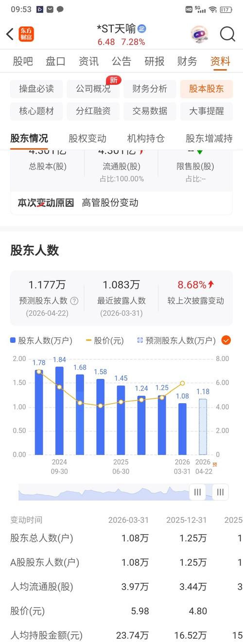 $*ST天喻(SZ300205)$我看中的股东人数