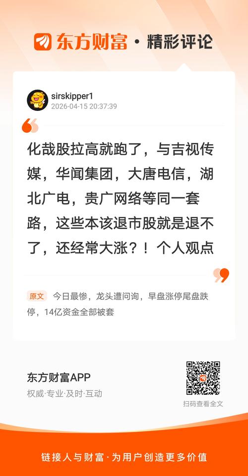 化哉股拉高就跑了,与吉视传媒,华闻集团,大唐电信,湖北广电,贵广网络等同一套路,这些本该退市股就是退不了,还经常大涨?!个人观点 我在《今日最惨,龙头遭问询,早盘涨停尾盘跌停,14亿资金全部被套》的评论获得了大家的关注。